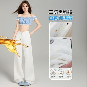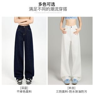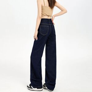 テンセルナローワイドレッグジーンズ女性用 2025 夏薄いダークブルー小柄なハイウエストストレートパンツ