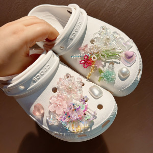 夏の韓国東大門新しいドーパミン靴花下駄アクセサリー手作りビーズ靴アクセサリー diy 靴バックル