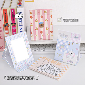 小さなかわいい折りたたみミラーデスクトップスタンド学生寮女性旅行ポータブル化粧鏡