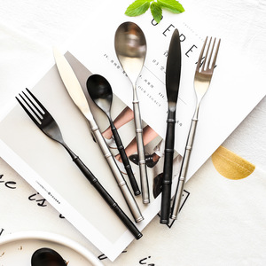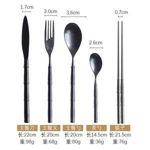 つや消し304ステンレス丸ハンドルローマンコラムブラックシルバー洋食ナイフ、フォーク、スプーン、箸4点セット食器ライト高級
