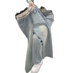 女性用ストレートジーンズ2025新作夏スリムフィットハイモップパンツ大きいサイズハイウエスト肉をカバーするワイドレッグパンツ