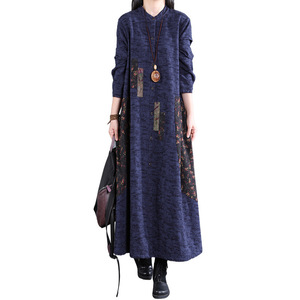 2025新款早秋气质连衣裙女长袖大码显瘦长裙棉宽松休闲长款裙子