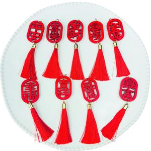 新年の平和と喜びのペンダント車のフック織りペンダント diy 招き猫ぬいぐるみタッセル装飾ペンダント