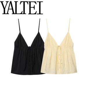 ZA 春の新作婦人服ヨーロッパとアメリカンスタイルのフレンチファッションデザインドレープサスペンダートップ 3744117