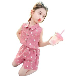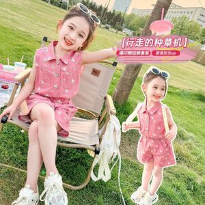 女の子スーツ夏 2025 新しいスタイルの小さな女の子ファッショナブルで超かわいい夏服韓国スタイルのルーズノースリーブスポーツ 2 点セット