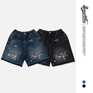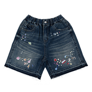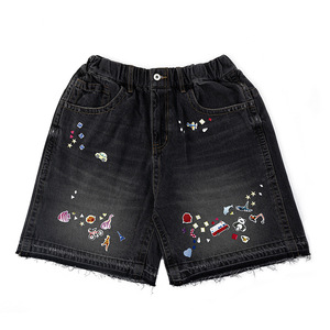 Lanhai メンズ 2025 春夏新作トレンディなブランドステッカーレトロルーズエッジタッセル弾性ウエスト多用途デニムショートパンツ
