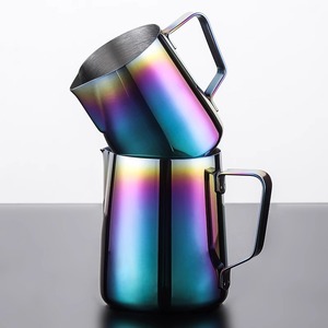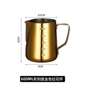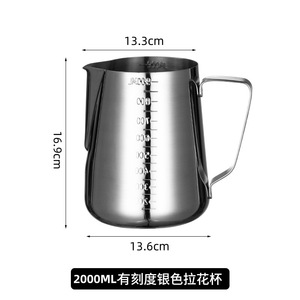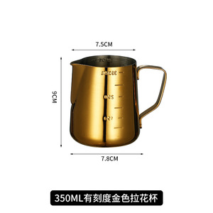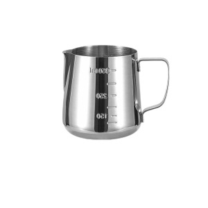 日本製304ステンレス鋼目盛り付きハンドル付き尖った口のラテアートカップ、コーヒー専用ミルク泡立て器、ミルクフォームカップ、ラテアートカップ