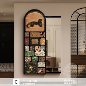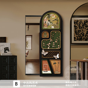 中古风法式全身镜客厅隐形推拉穿衣镜衣帽间镜子隐藏式装饰画挂画