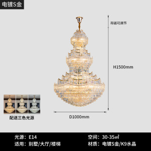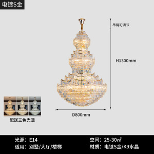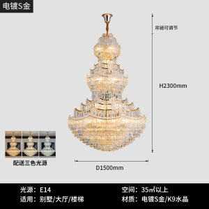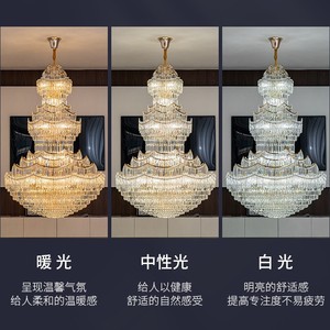 複層フロア大型シャンデリアヨーロピアンスタイルヴィラリビングルームクリスタルランプライト高級ホテルホールランプ中空高さロングシャンデリア