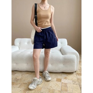 Sinan アウトドア酸素日リゾートスタイルコントラストカラーステッチ弾性ウエスト巾着ルーズカジュアルショーツ SN7653