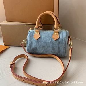 クロスボーダーパウダーデニム レトロスピーディーミニボストン グラデーションデニム デニム刺繍 ナノピローバッグ