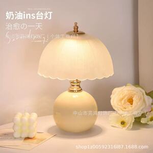 キノコテーブルランプクリームスタイル目の保護寝室のベッドサイドランプ暖かい女の子の誕生日結婚祝い雰囲気ナイトライト