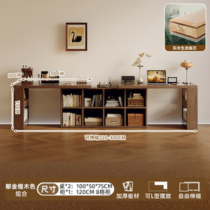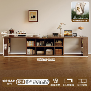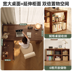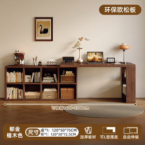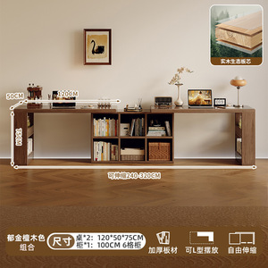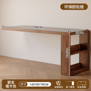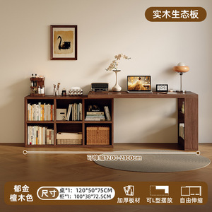 实木双人书桌成人家用学习桌卧室长条桌子收纳柜一体可伸缩电脑桌