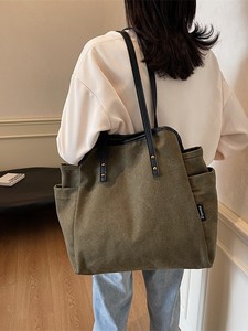 シンプルなキャンバスバッグ女性のための秋と冬 2025 新しいカジュアル大容量ショルダーバッグ学生クラスのバッグトートバッグ