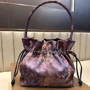 2025 新しいバケットバッグ新しい中国風の香りの雲花ダークパターンジャカード調整可能なクロスボディバッグコンパクト中国風多用途