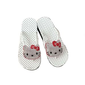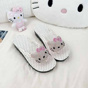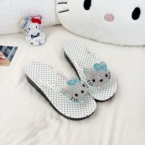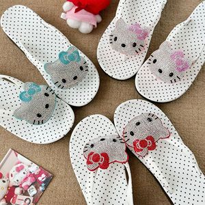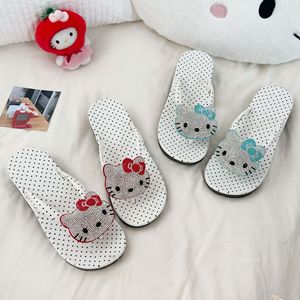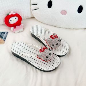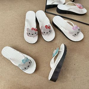 見栄えの良い水玉模様のラインストーン猫スリッパ、ファッショナブルで屋外で着用可能、快適で耐久性があり、耐摩耗性、高さのあるウェッジヒールのビーチサンダル