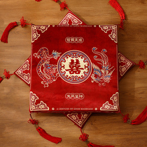 結婚式のひざまずくクッション、お茶を捧げるためのひざまずくクッション、赤い結婚式の花嫁の祝福の言葉の祝福クッションセット用品