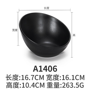 メラミン鍋斜めボウルビュッフェレストラン調味料ボウル野菜バケツボウル模造磁器食器プラスチック黒ボウル商業