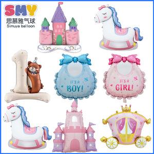 クロスボーダーファンタジーピンクキャッスルバルーンベビー1歳の誕生日クマよだれかけトロイの木馬プリンセスシリーズアルミフィルムバルーン