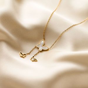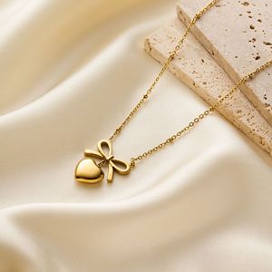 国境を越えた売れ筋のクラシックなニッチで多用途な色褪せない18Kゴールドチタン鋼ラブリボン鎖骨チェーンネックレス