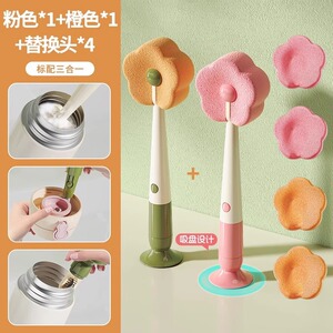 吸盤スリーインワンカップブラシ[オレンジ+ピンク]+交換用ヘッド4個