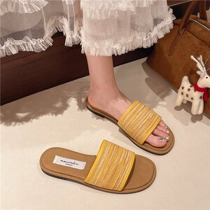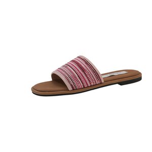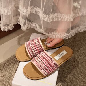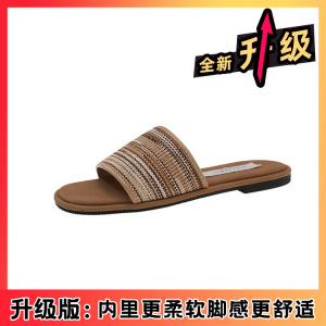 厂家直销复古编织露趾拖鞋新款小众设计一字拖简约休闲舒适平底鞋