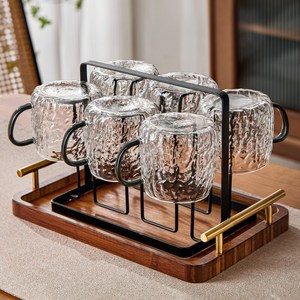 高ホウケイ酸耐熱ガラスウォーターカップ家庭用ティーカップ透明氷河パターンマグダークグリーンハンドルビッグベリーコーヒーカップ