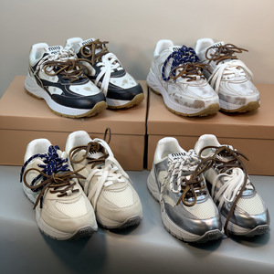2025 新しいお父さん靴 2 色の靴ひも本革フォレスト・ガンプシューズカジュアル女性の靴レトロ古い厚底スポーツシューズ