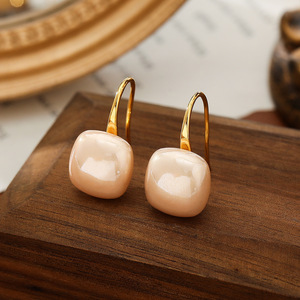 銅メッキ18Kリアルゴールドライトピンク小さな角砂糖パールイヤーフックシンプルでファッショナブルな気質多用途ハイエンドイヤリング