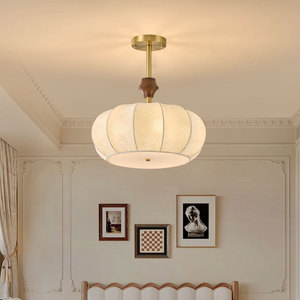 フレンチミッドセンチュリースタイルの全銅生地のレストランベッドルームランプアメリカンレトロクリエイティブ暖かいマスターベッドルームランプ目の保護シャンデリア