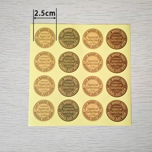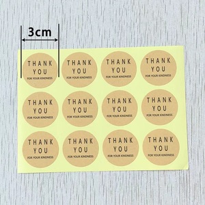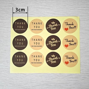 ダークブラウンのサンキューステッカー(直径3cm)、黄色のクラフト紙、12枚入り