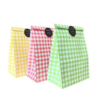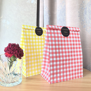 黄色のチェック柄、白いクラフト紙、15*9*22.5