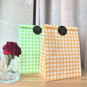 オレンジチェック柄、白クラフト紙、15*9*22.5