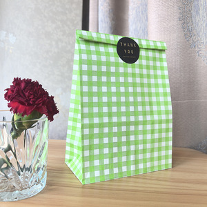 緑のチェック柄、白のクラフト紙、15*9*22.5