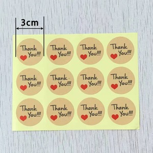 ナチュラルラブありがとうステッカー(直径3cm)、黄色クラフト紙、12枚入り