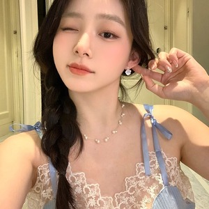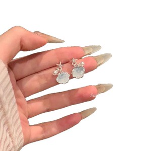 夏の砕いた氷ブルークリスタルヒトデシェルパールイヤリング女性のハイエンド気質イヤリングノンホールピアスイヤリング