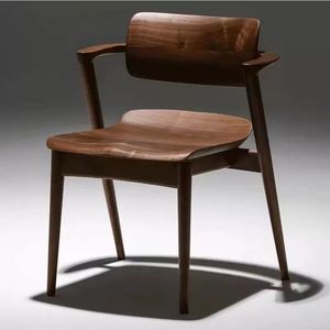 北米産ブラックウォールナットダイニングチェア無垢材家庭用ショートアームチェアレジャーチェア無垢材補助材なしレトロシンプル北欧