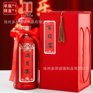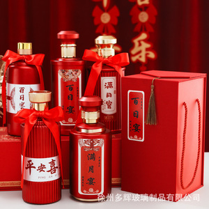 百日宴满月宴酒瓶一斤装空酒瓶密封玻璃酒瓶白酒瓶可印制包装全套