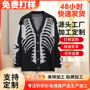 新しいジャカードハロウィンニットカーディガンVネック長袖男の子と女の子のセーターを加工するソース工場
