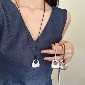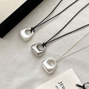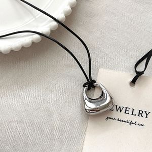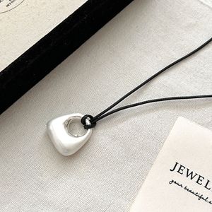 ブロガーと同じスタイルのシルバーペンダントネックレス、女性向け、個性的でシンプル、高級感があり、多用途で調節可能な黒紐のセーターチェーンアクセサリー