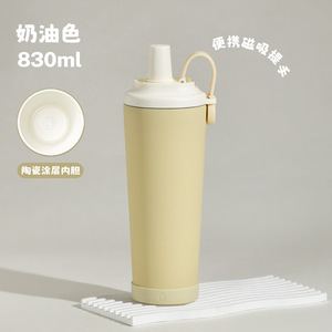 新しいクロスボーダー 830 ミリリットル魔法瓶カップポータブル磁気ハンドル大穴吸収性パールセラミックコーティングライナーウォーターカップ