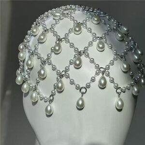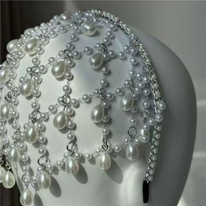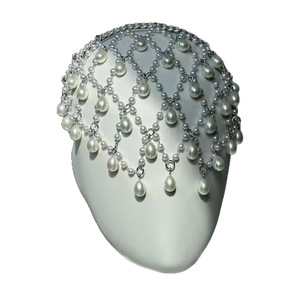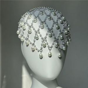 エスニックスタイルレトロブライダルウォータードロップ模造真珠の頭飾り手作りビーズキャットウォークジュエリーパーソナライズされたファッションメッシュヘアアクセサリー