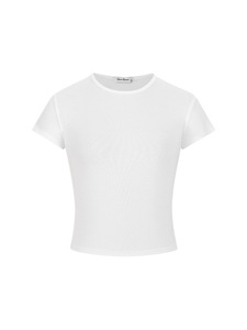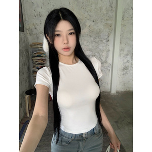 女性用外貿スリム半袖Tシャツ2025夏新作韓国風カジュアルホワイト右肩ボトムシャツレディーストップス