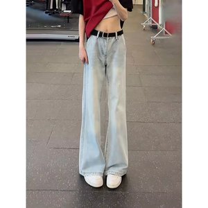 浅蓝色弯刀牛仔裤男春秋新品美式高街vibe裤子直筒微喇宽松休闲裤