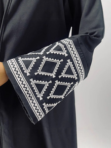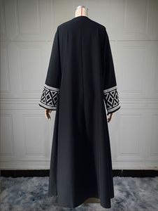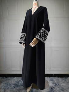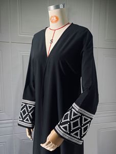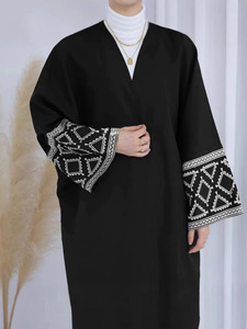 中東のイスラム教徒の女性用カーディガン、黒の高級ヘビーデューティー刺繍ローブ、アラブのVネック、ゆったりとしたスリムなドレス