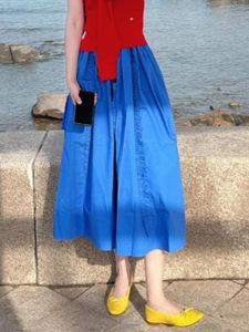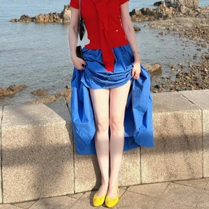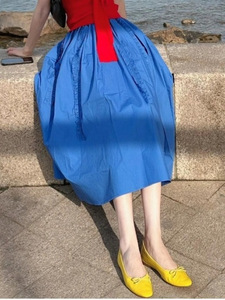 高級人気フレンチヘップバーンスタイル高級傘スカートレディースサマーブルースカートドーパミン香港風スカート