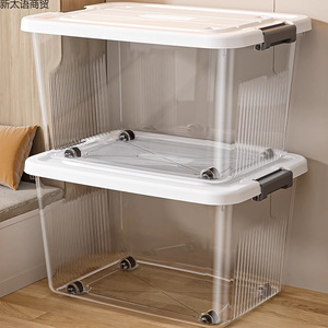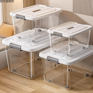 大型透明収納ボックス、厚い収納ボックス、プラスチック製の家庭用衣類収納ボックス、蓋付きポータブル収納ボックス、最小ロット 1 個