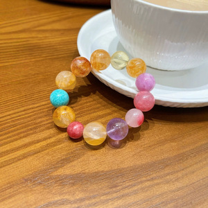 クリスタルマルチトレジャー ブレスレット オリジナルデザイン エネルギーブレスレット イエローグルーフラワー パープルクォーツ シトリン アメジスト アマゾナイト