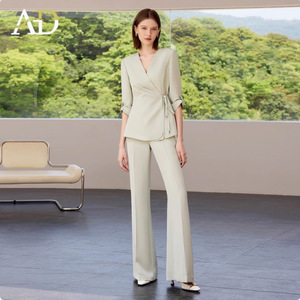 夏の新作七分袖Vネックビジネススーツ、高級ファッションブーツカットパンツ、フォーマル作業服、ビジネススーツ