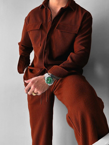 2025 速卖通亚马逊跨境爆款男士休闲翻领衫灯芯绒长袖春秋T恤上衣